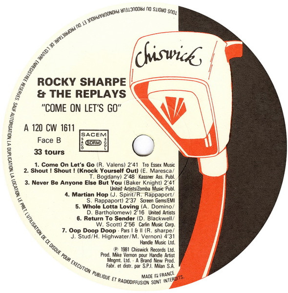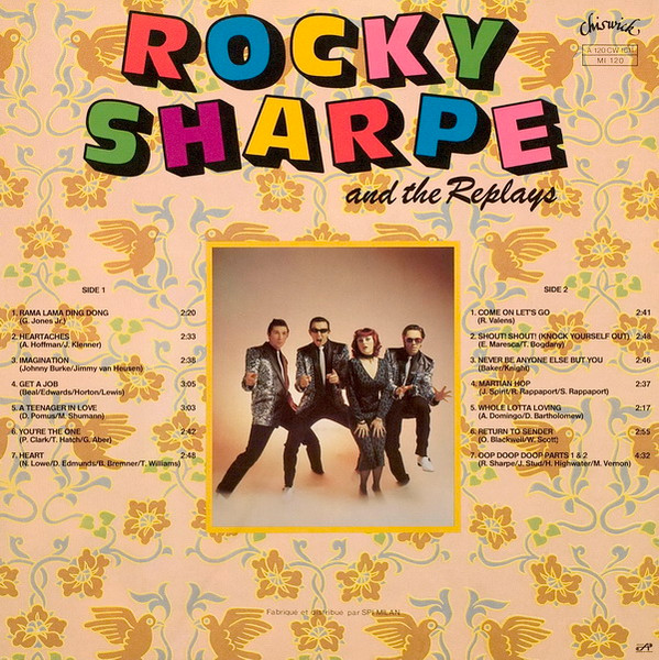 "Rocky Sharpe And The Replays" (on front and back cover) and "Rocky Sharpe & The Replays" (on labels and spine);