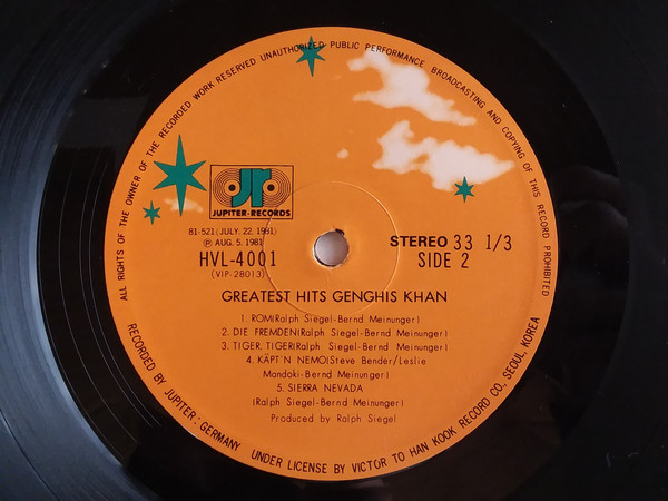Under License by Victor to Han Kook Record Co., Seoul, Korea