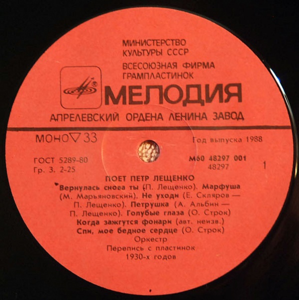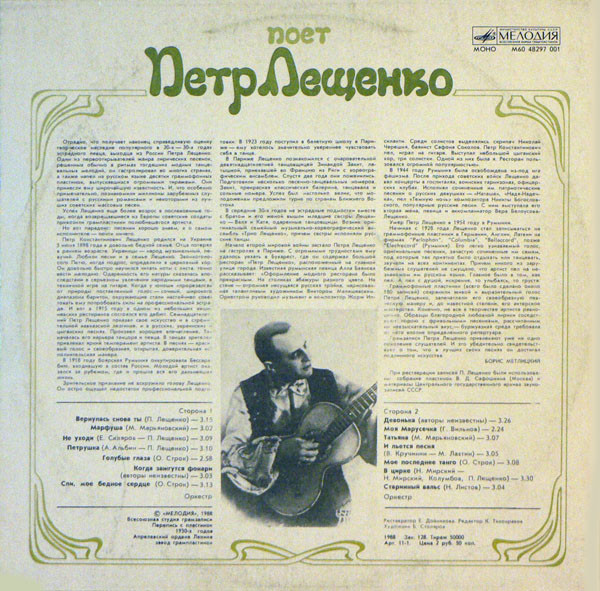 При реставрации записей П. Лещенко были использованы собрание пластинок В. Д. Сафошкина (Москва) и материалы Центрального государственного архива звукозаписей СССР