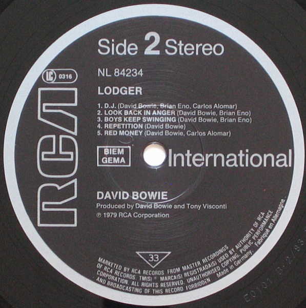 - Music By – Eno* (tracks: A1, A2, A5 to B3), Alomar* (tracks: B1, B5), Bowie*