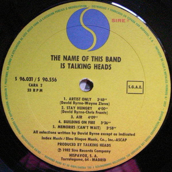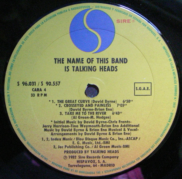 (C) 1982 Sire Records Company & Talking Heads Tours Inc.