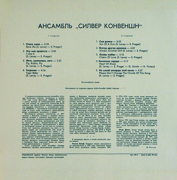 - Printed By – Ордена Ленина Типография «Красный Пролетарий»