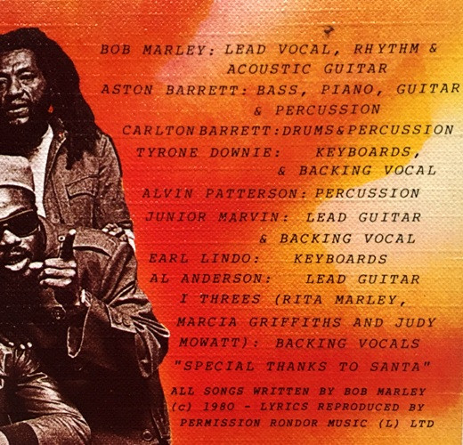 - Backing Vocals – I Threes, Junior Marvin, Tyrone Downie
