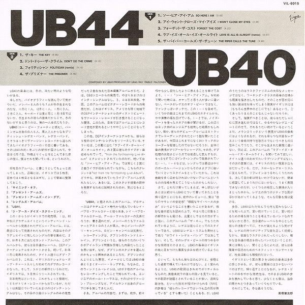 Made in Japan by Victor Musical Industries, Inc. Licensed by Virgin Records Ltd., England. ℗1982Ⓚ
