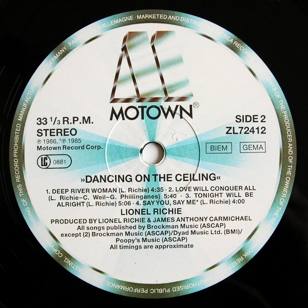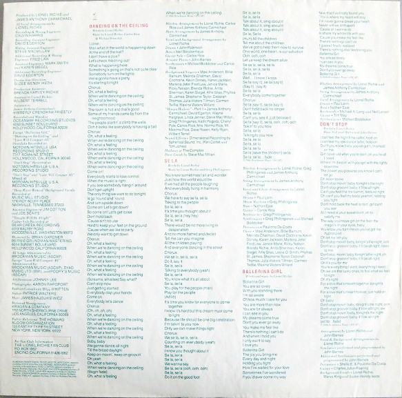 Except "Ballerina Girl," "Dancing on the Ceiling" and "Love Will Conquer All," Overdubs Recorded at Motown/Hitsville USA. Recording Studio 7317 Romaine Street Hollywood, California 90046