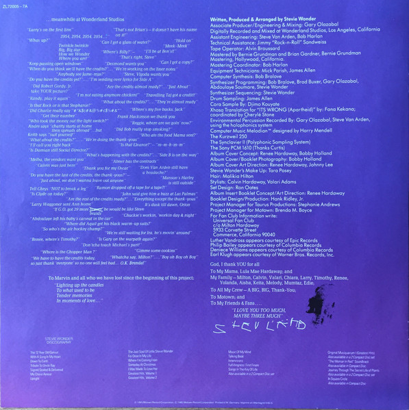 - Programmed By [Synthesizer Programming] – Abdoulaye Soumare, Bob Bralove, Brad Buxer, Gary Olazabal, Stevie Wonder