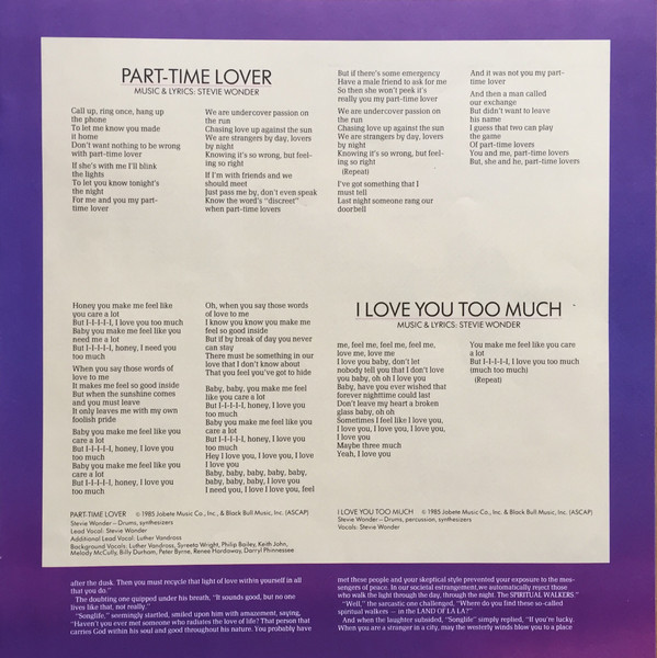 - Written-By, Producer, Arranged By, Music By, Lyrics By, Sequenced By [Synthesizer Sequencing] – Stevie Wonder