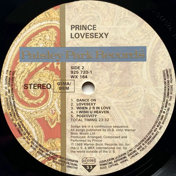- Copyright © – Paisley Park Records Inc.