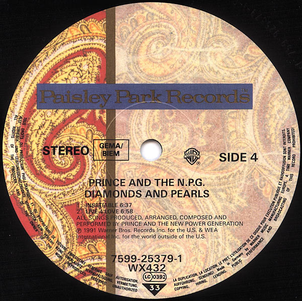 Diamonds And Pearls (cover without embossed Warner "W" logo / vinyl without 'Hü' signature in matrix)