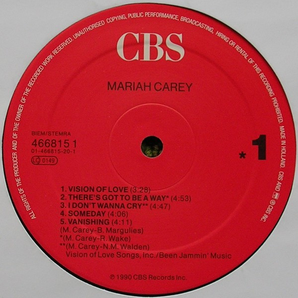 Big round sticker on cover: Contains the No. 1 US Smash Hit "Vision of Love" 01-466815-20