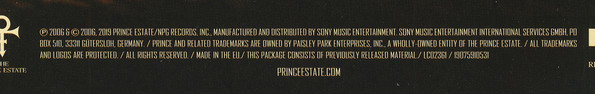 ℗ 2006 & © 2006, 2019 Prince Estate/NPG Records, Inc. Manufactured and distributed by Sony Music Entertainment. Sony Music Entertainment International Services GmbH, PO Box 54, 3330 Gütersloh, Germany. / Prince and related trademarks are owned by Paisley Park Enterprises, Inc. a wholly-owned entity of The Prince Estate. / All trademarks and logos are protected. / All Rights Reserved. / Made In The EU / This package consists of previously released material. / LC02361 / 19075910531
