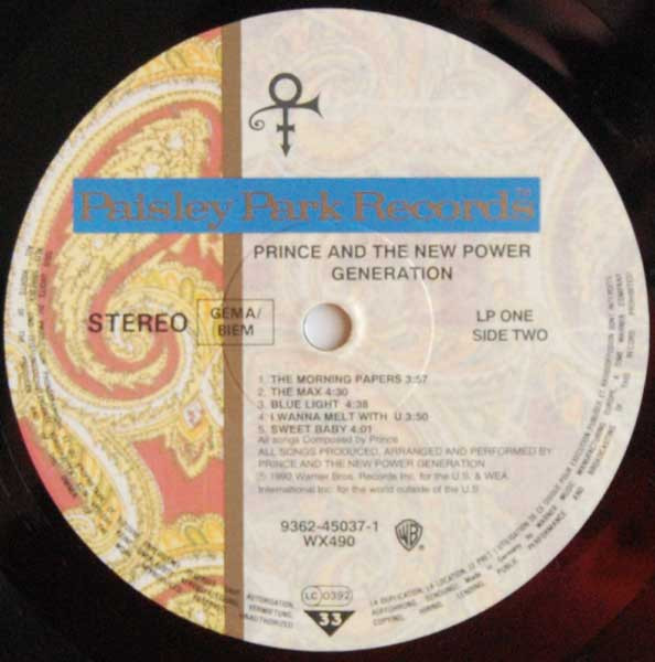 Paisley Park Records, manufactured and distributed by Warner Bros. Records Inc., a Time Warner Company.