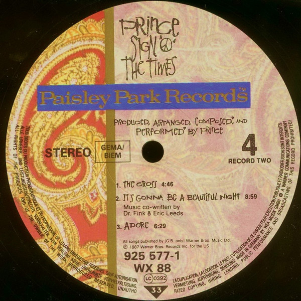© 1987 Paisley Park Records ℗ 1987 Warner Bros. Records Inc for the US.