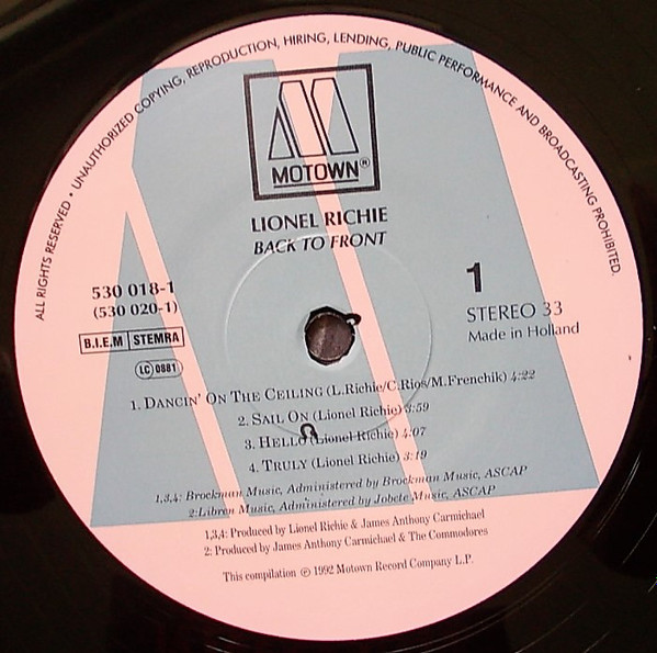 - Arranged By [Vocal] – Lionel Richie (tracks: to B1, B3 to C1, D1 to D2)