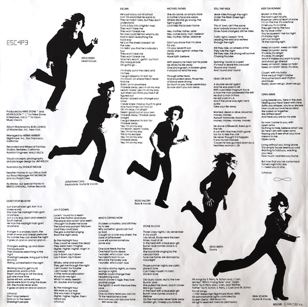 - Written-By – J. Cain*, M. Schon* (tracks: B4), N. Schon* (tracks: A1, A2, A4 to B4), S. Perry*