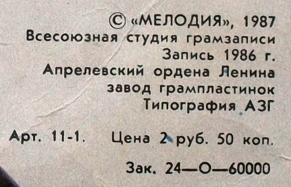 - Pressed By – Апрелевский Завод Грампластинок