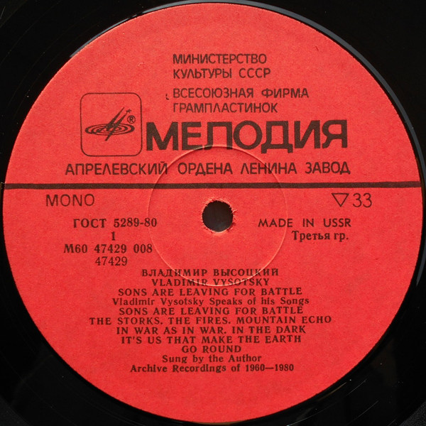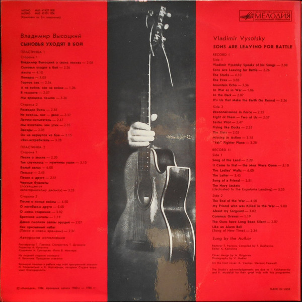 | А1 | Vladimir Vysotsky Speaks Of His Songs · Владимир Высоцкий О Своих Песнях | 2:08 | |