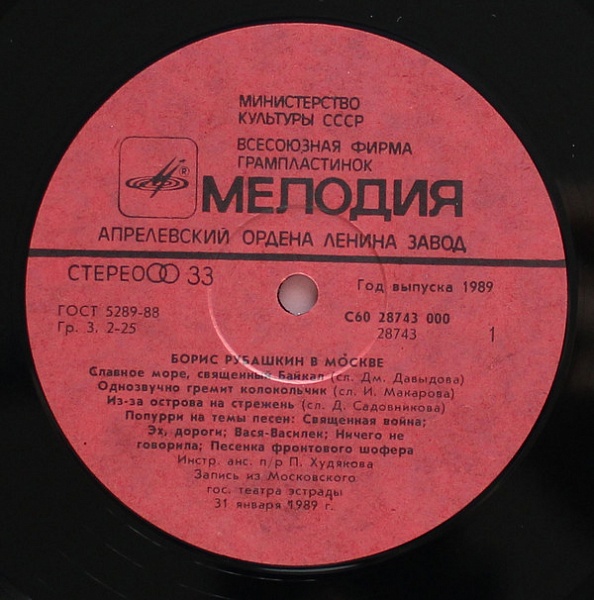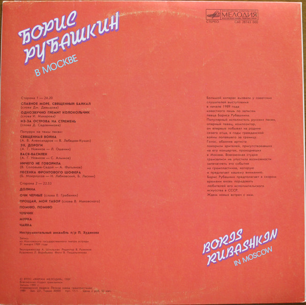 © ВТПО «ФИРМА МЕЛОДИЯ», 1989