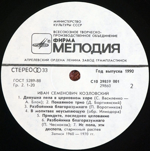 - Tenor Vocals – Иван Семенович Козловский*, А. Клеймёнов* (tracks: B5), Б. Яганов* (tracks: B2, B4)