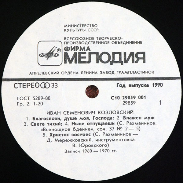 - Chorus Master – А. Юрлов* (tracks: A1 to A4), К. Птица* (tracks: B5 to B7)