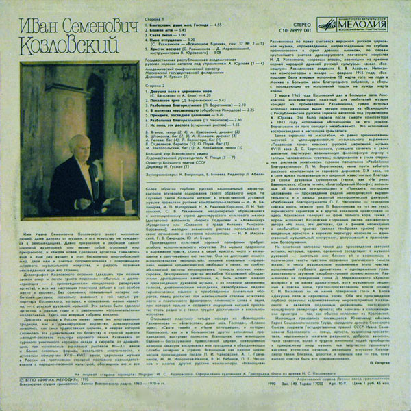 - Orchestra – Оркестр Большого Театра СССР* (tracks: B1), Академический Симфонический Оркестр Московской Государственной Филармонии* (tracks: A5)