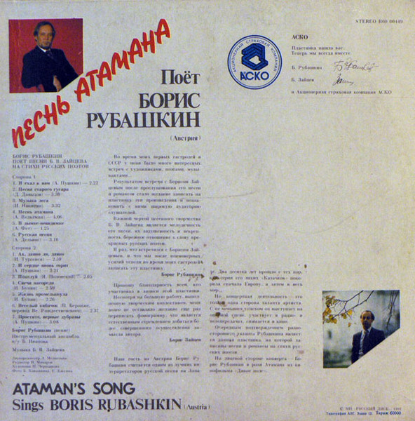 subtitle: "Борис Рубашкин поет песни (и романсы) Б. В. Зайцева на стихи русских поэтов