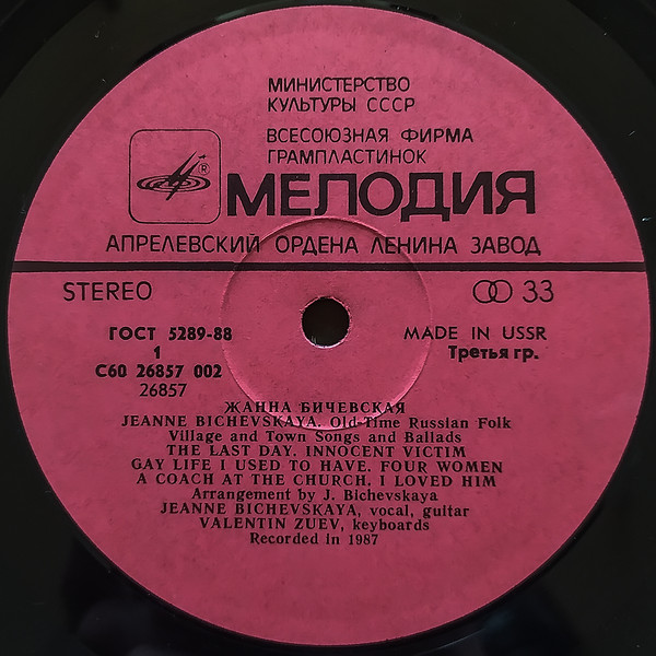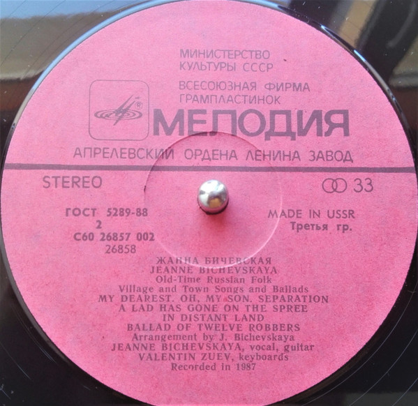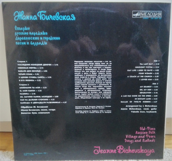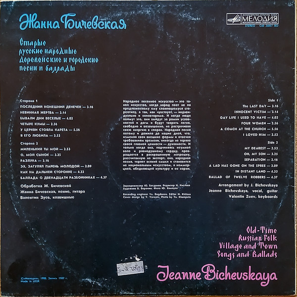 © "Мелодия", 1988. Запись 1987 г.