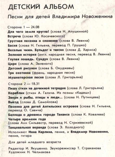 - Vocals, Guitar, Music By – Владимир Новоженин