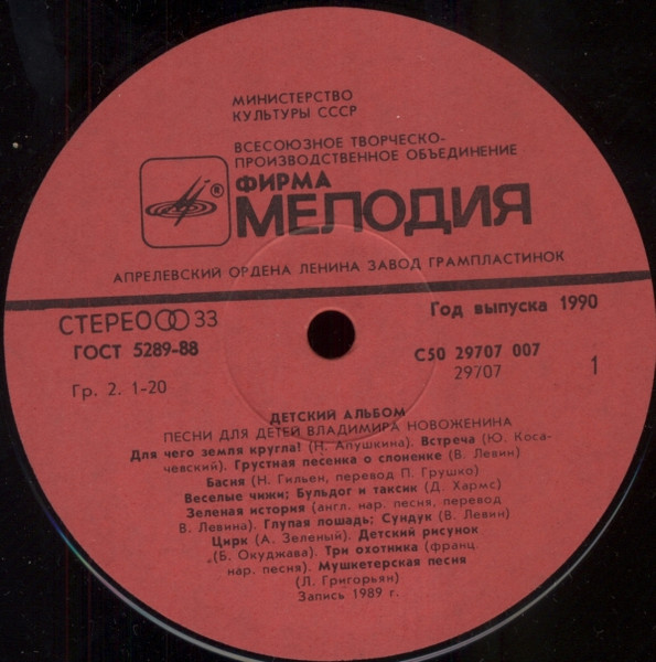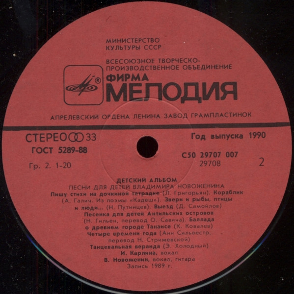 Всесоюзная студия грамзаписи. Запись 1989 г.