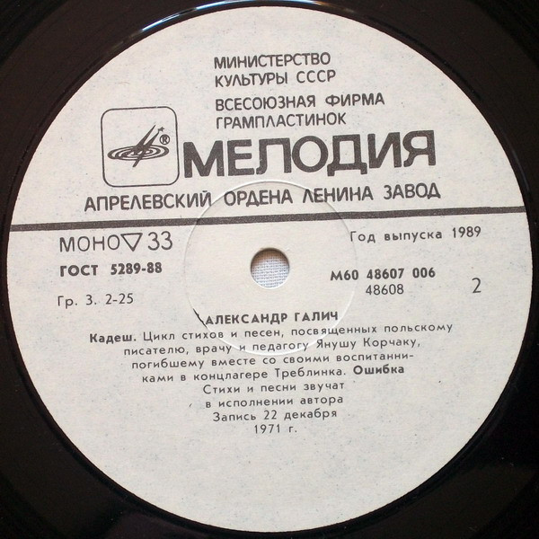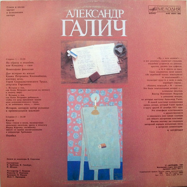 - Written-By, Vocals, Guitar, Read By – Александр Галич