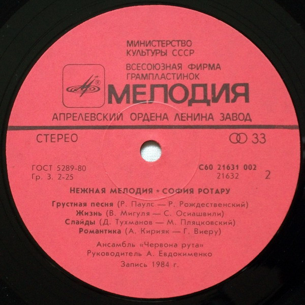 Всесоюзная студия грамзаписи. Запись 1984 года