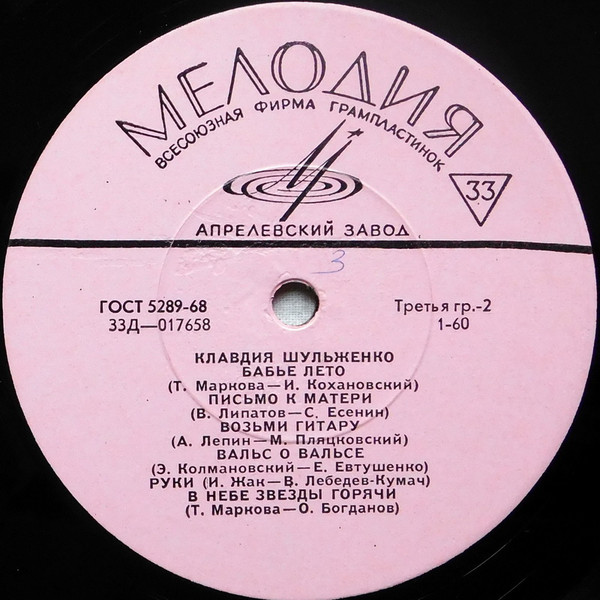 - Pressed By – Апрелевский Завод Грампластинок