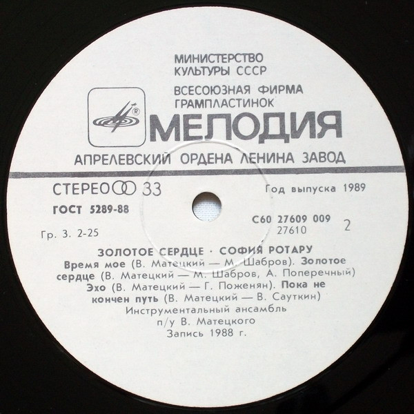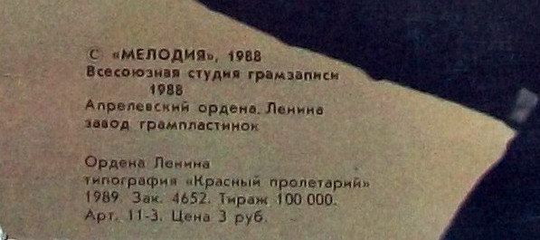 Всесоюзная студия грамзаписи. Запись 1988 г.