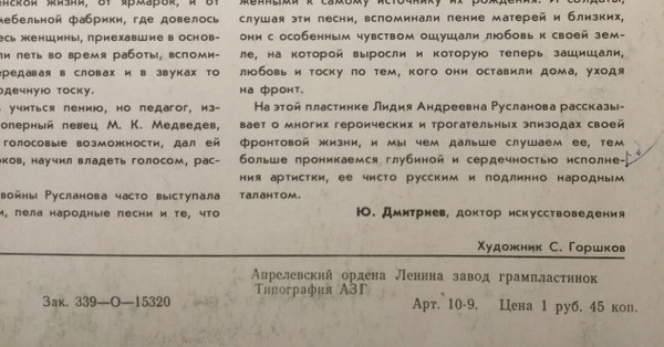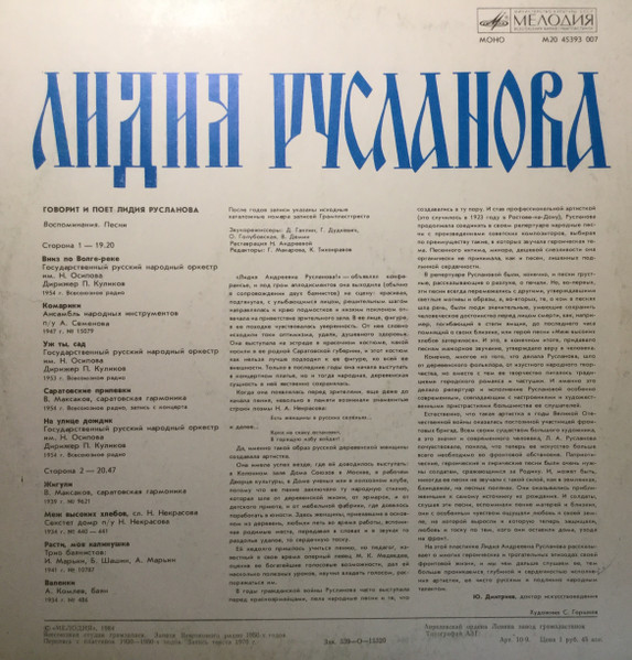 - Recorded By – Всесоюзная Студия Грамзаписи