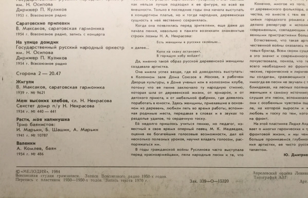 - Recorded By – Всесоюзное Радио