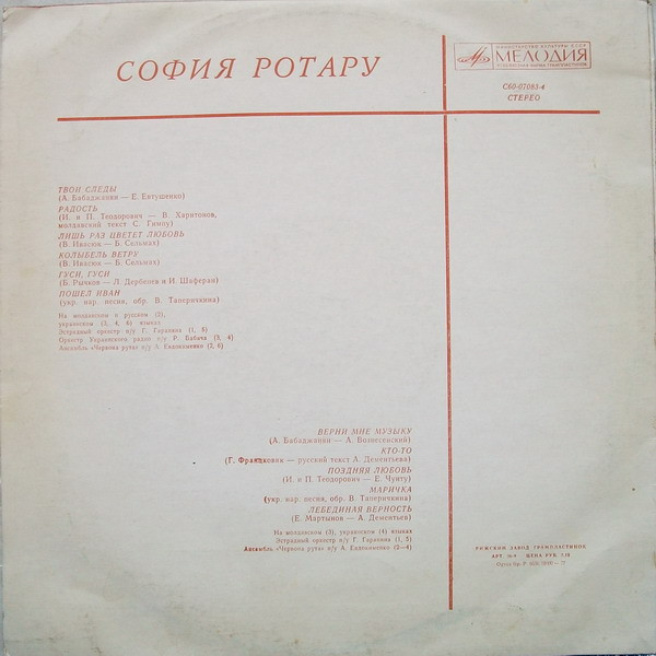 - Orchestra – Оркестр Украинского Радио* (tracks: A3, A4), Эстрадный Оркестр Под Упр. Гараняна* (tracks: A1, A5, B1, B5)
