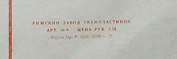 - Pressed By – Рижский Завод Грампластинок