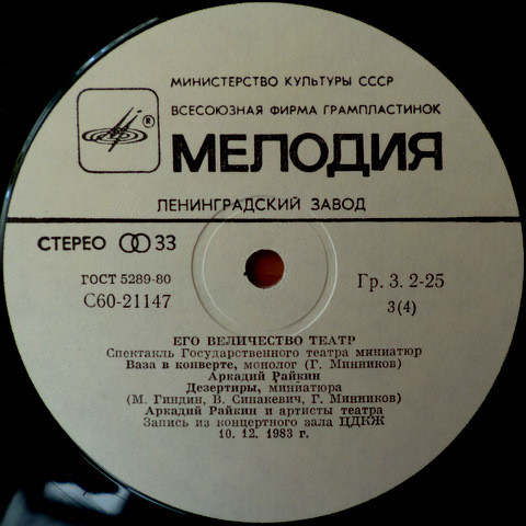 - Words By, Performer, Voice Actor – А. Райкин* (tracks: A2, B2)
