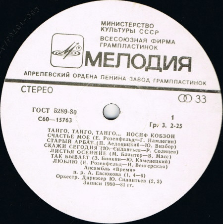 - Recorded By – Всесоюзная Студия Грамзаписи