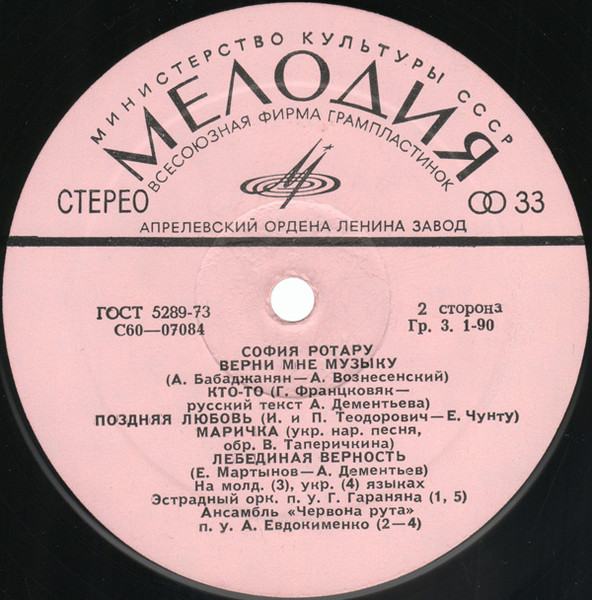 - Orchestra – Оркестр Украинского Радио* (tracks: A3, A4), Эстрадный Оркестр Под Упр. Гараняна* (tracks: A1, A5, B1, B5)