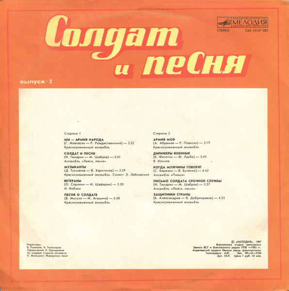 - Recorded At – Всесоюзная Студия Грамзаписи