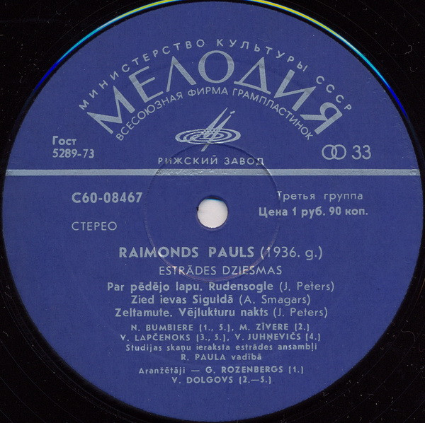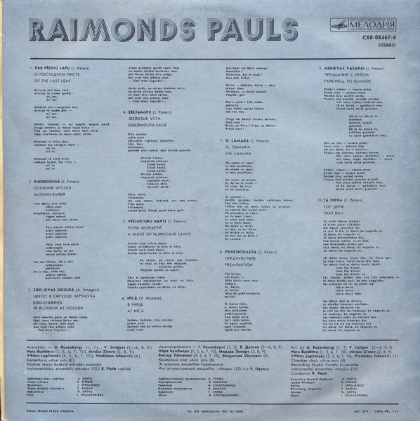 - Arranged By – G. Rozenbergs* (tracks: A1, B2), V. Dolgovs* (tracks: A2 to A5, B1, B3 to B5)