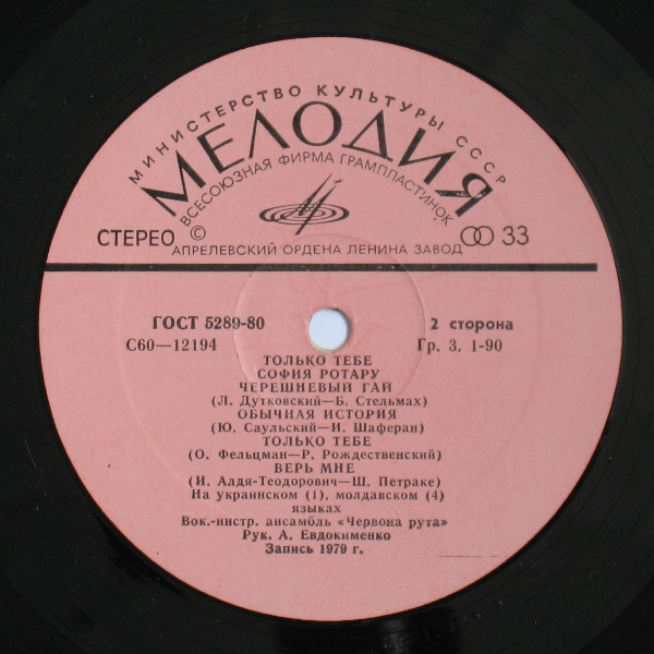 Всесоюзная студия грамзаписи. Запись 1979 г.