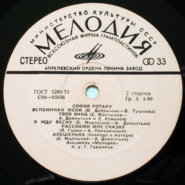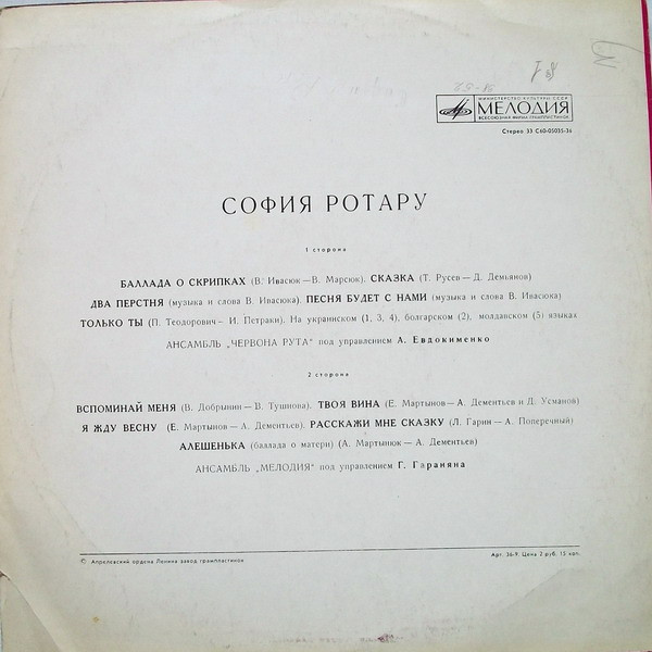 - Ensemble – Мелодия (tracks: B1 to B5), Червона Рута (tracks: A1 to A5)