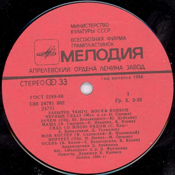 - Music By – В. Козин* (tracks: A7, B3, B6)