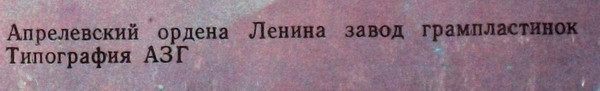 - Pressed By – Апрелевский Завод Грампластинок
