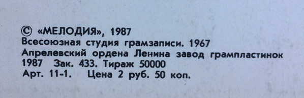 - Recorded By – Всесоюзная Студия Грамзаписи