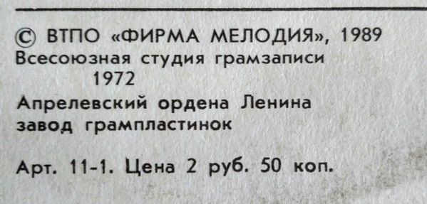 - Recorded By – Всесоюзная Студия Грамзаписи