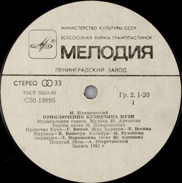 Всесоюзная студия грамзаписи. Запись 1983 г.
