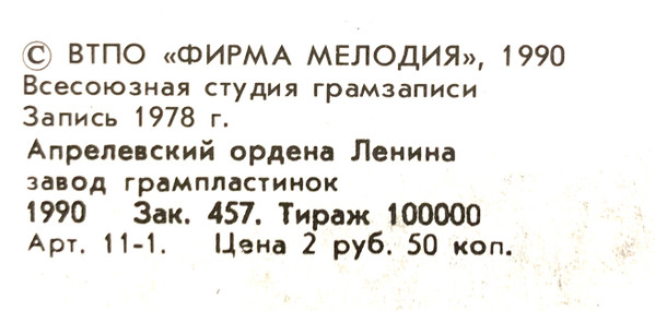 - Recorded By – Всесоюзная Студия Грамзаписи